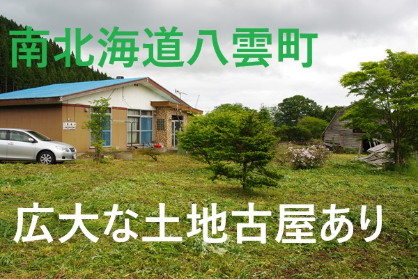 | コメント: | 牧場農家の宅地や畑として利用されていた1613坪の平坦地。 国道から5kmほど山手に入る静かな環境、病院・スーパー・ホームセンターなどの揃う八雲の市街地まで車で20分で行ける立地。 近くを流れる野田生川ではヤマメが、海へ出ればホッケ・カレイ・アイナメなどが釣れ、海と渓流、両方の釣りが楽しめる。 また、周辺には桜野温泉や銀婚湯温泉をはじめ多くの温泉が点在していて、のんびりと田舎暮らしを楽しむには最高の環境。 敷地内には住宅として使われていた古家もあり、大規模なリフォームは必要だが、まだ使えそうだ |