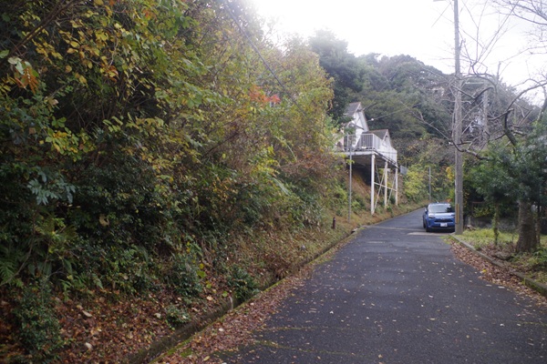 道路より上り傾斜上部平坦 |