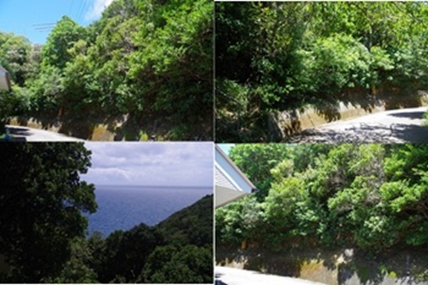 の岬先端にいたる海を望む分譲地内にあり、比較的建物も多く建っている。傾斜地だが樹木を伐採すれば眺望はとてもよく、建物を建てれば、南側に海一望の景観が望める。海岸までも車で5分ほどパノラマ画像はこちらちょっとだけ現地にいるような感じになれます |